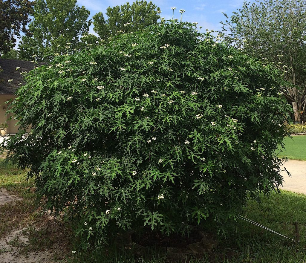 Great edible green. This plant is one of the easiest edible plants to grow in Florida. Native to Mexico, this is a fast-growing, drought-tolerant, perennial shrub, typically reaching 3 m (10 ft) in height. As one of its common names (Tree Spinach) implies, it is grown for its dark-green leaves, which it produces in abundance. HIghly nutritious, being a good source of protein; calcium, phosphorus, and iron; and vitamins A and C as well as niacin, riboflavin and thiamine. The leaves and stem tip materials normally are chopped into pieces before cooking like spinach. Chaya leaf and tip pieces also are added to soups, stir fries, spinach dip, or mixed with onions and eggs to make tortillas. MUST BE COOKED. Should not be eaten raw.